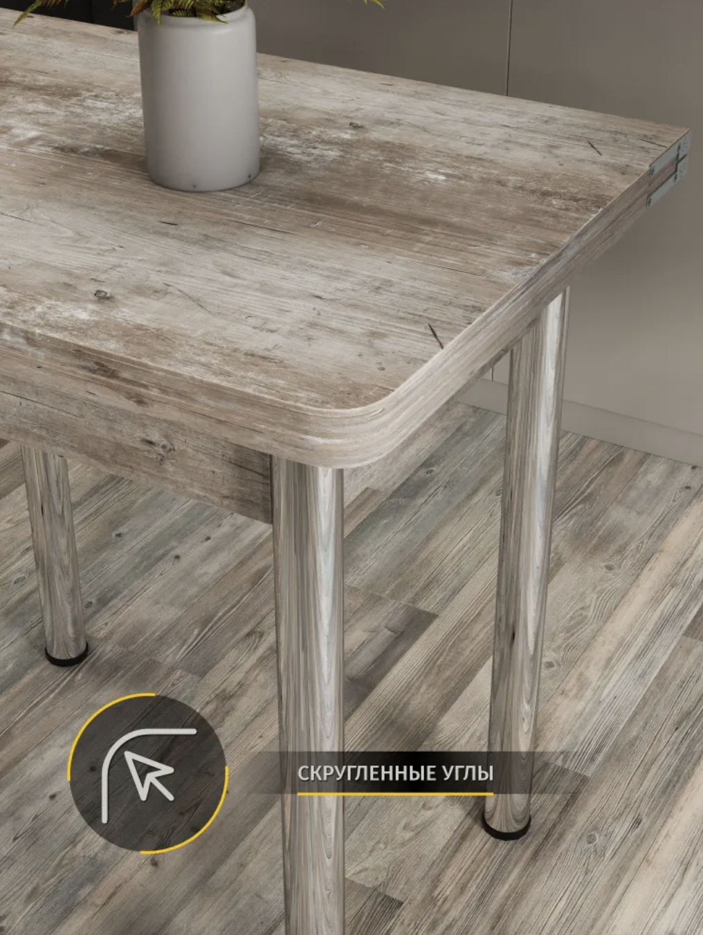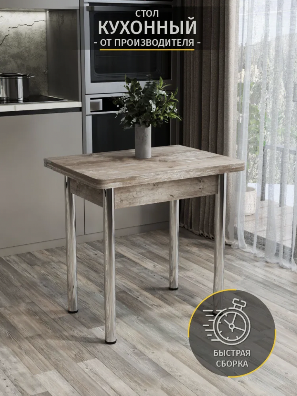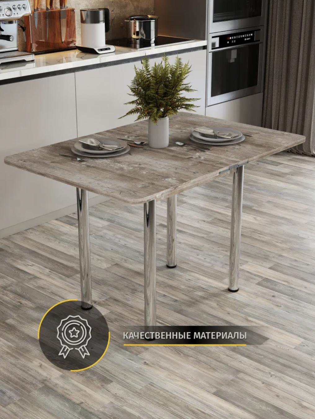 Стол кухонный Раскладной Ломберный, Штейн светлый, 78х58х75 см, ноги Хром