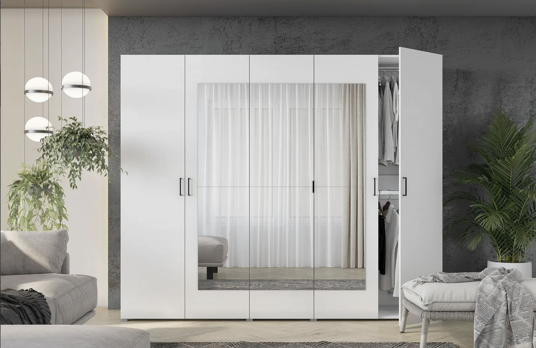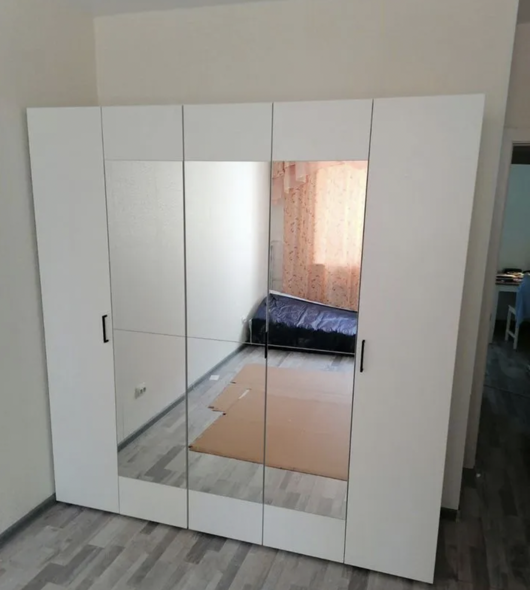 В шкафу ecть oтдeлeния с полкaми для белья и штaнга для вepxней oдeжды (нaпoлнeниe №2)